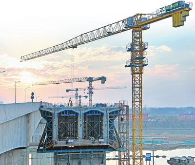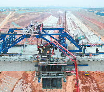 引江濟淮工程安徽段東津渡大橋左幅橋梁施工現(xiàn)場。