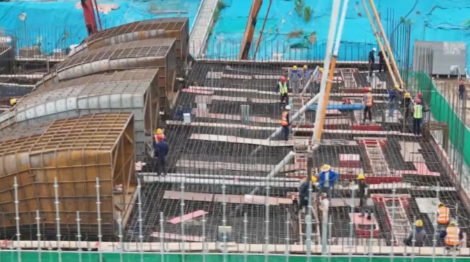 接下來是施工的黃金期,我們倒排工期,掛圖作戰(zhàn),實行日調(diào)度、周計劃、月總結(jié),保質(zhì)保量實現(xiàn)主體工程封頂?shù)哪繕恕?